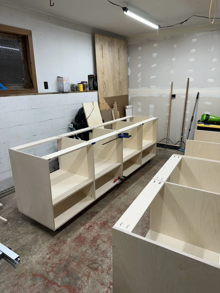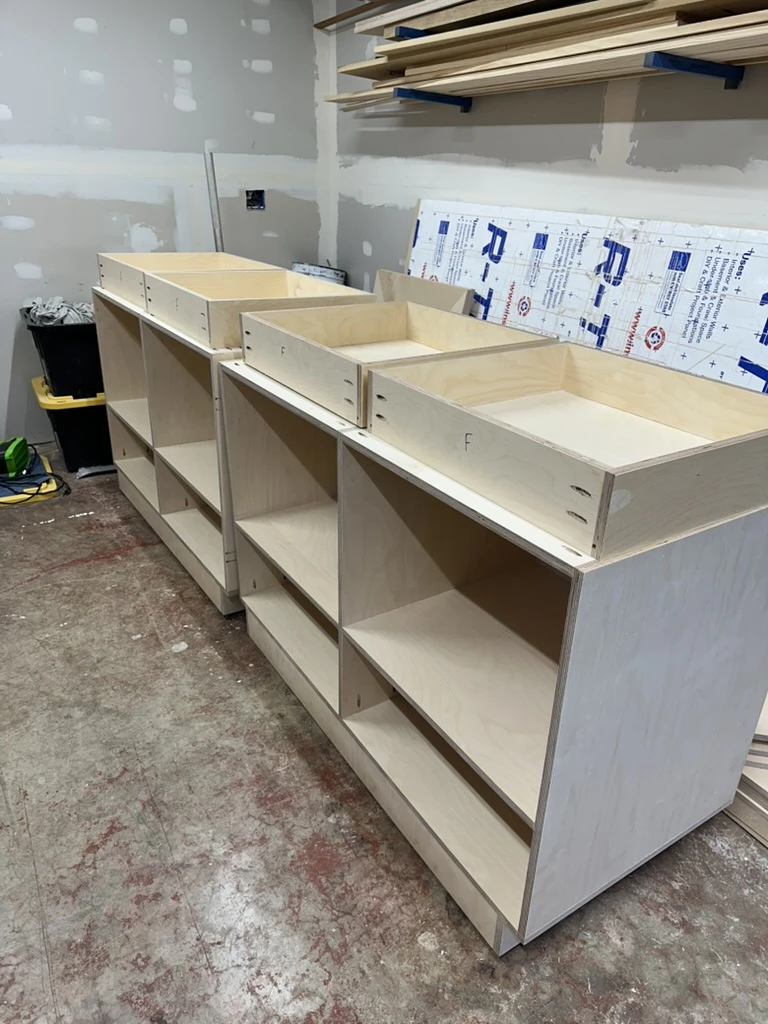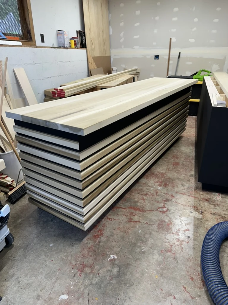 Designed and built for Purpose Boutique, this checkout counter uses poplar throughout the top and slatted face to create a piece that feels both intentional and approachable. The design prioritizes function behind the counter while presenting a simple, classy focal point for the shop.