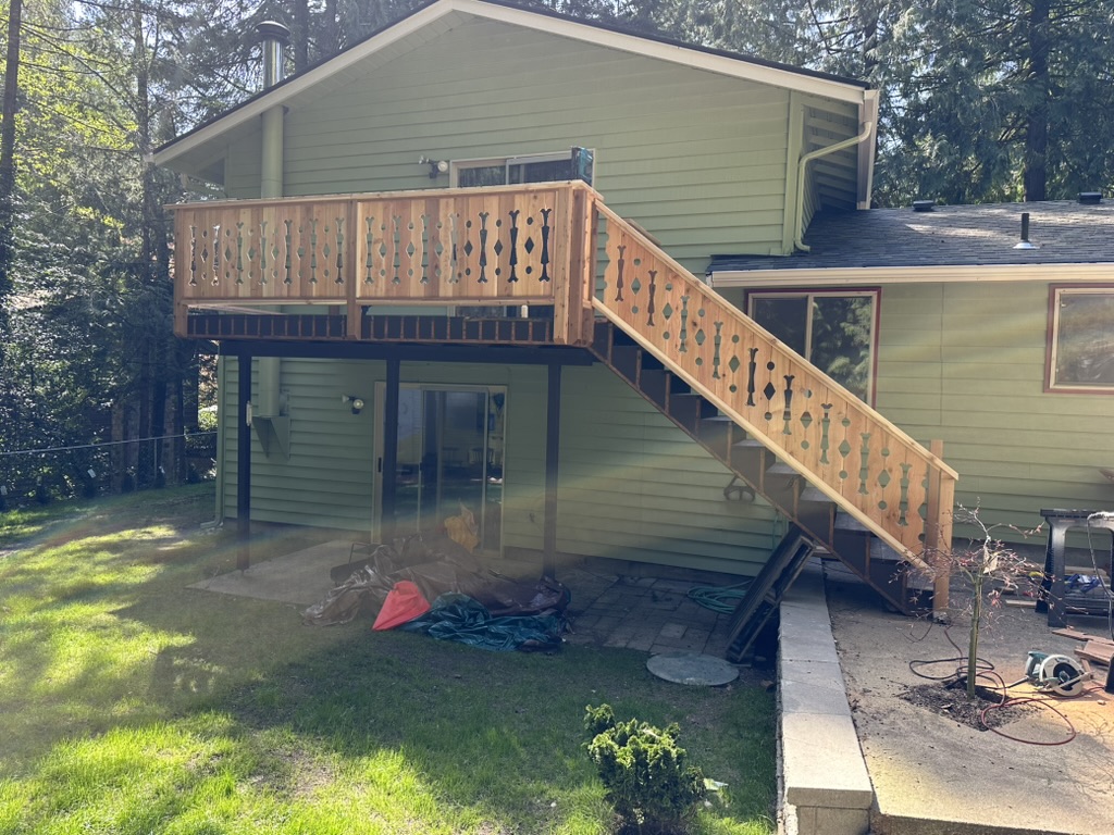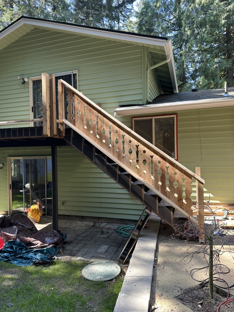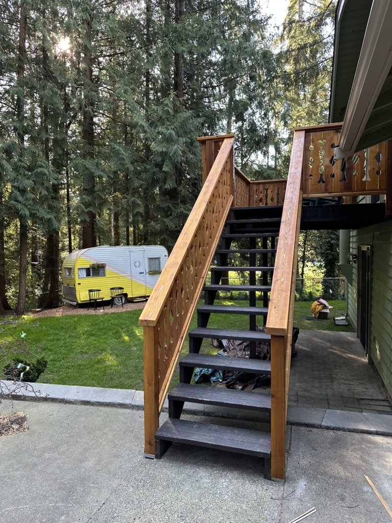 This deck makeover leans fully into cozy ski chalet charm, complete with custom railing, built-in planter boxes, and warm, rustic shutters. What was once a simple outdoor space now feels like a little mountain retreat, perfect for morning coffee or evening gatherings. The natural textures, layered details, and thoughtful craftsmanship bring in that relaxed lodge feeling without ever leaving home. It is the kind of space that instantly feels comfortable, welcoming, and a little bit like a vacation every day.