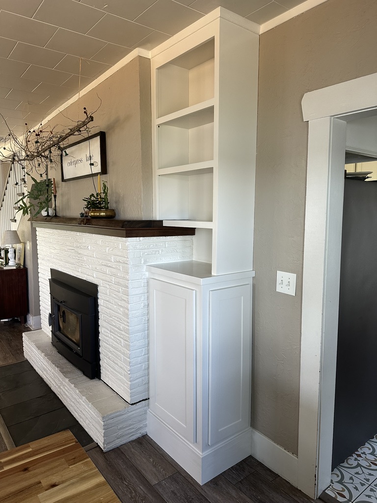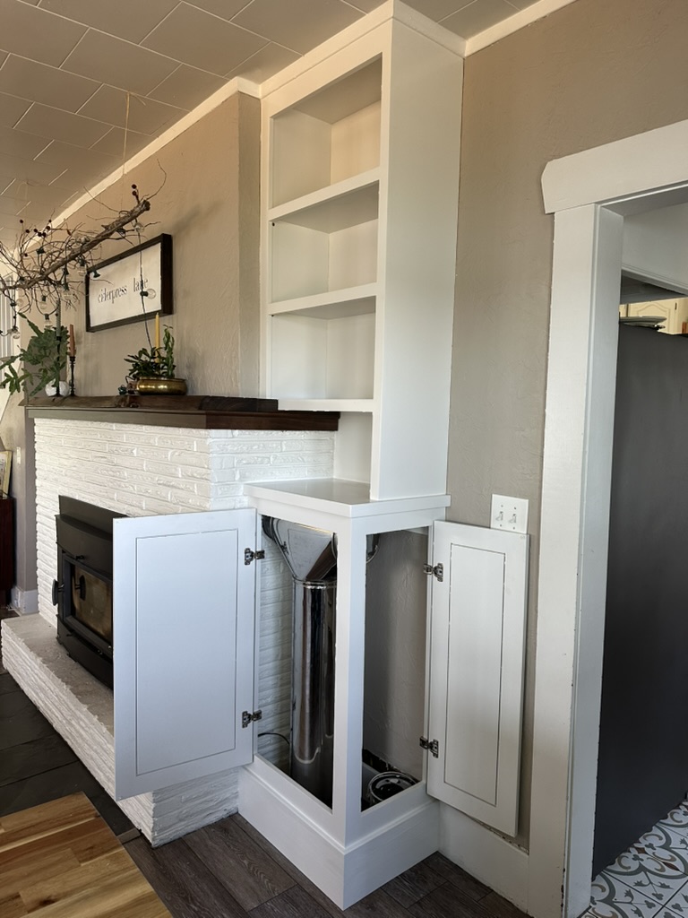 What once looked like a piece of industrial equipment running through the living room is now hidden behind a custom built-in cabinet that blends naturally into the space. The exposed, spaceship-like ductwork has disappeared behind warm finishes and clean lines, completely changing the feel of the room. The space now feels comfortable, polished, and intentional instead of cold and mechanical. In addition to improving the look of the room, the built-in also adds functional storage, proving that even awkward features can become seamless parts of the design when they are handled with care.